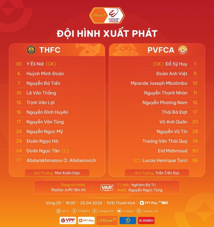 Tường thuật trực tiếp trận đấu giữa Thanh Hóa vs PVF-CAND trong khuôn khổ vòng 20 V-League 2025/26.