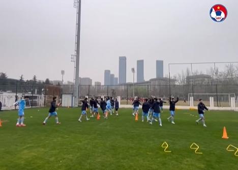 Ngay khi đặt chân đến Trung Quốc, toàn đội di chuyển về khách sạn Novotel Xian Xixian để dùng bữa nhẹ buổi tối và nhận phòng nghỉ ngơi. Dù vừa trải qua chặng di chuyển dài, các cầu thủ nhanh chóng ổn định thể trạng để bước vào buổi tập đầu tiên.
