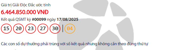KẾT QUẢ XỔ SỐ VIETLOTT 15/8/2025 - THỨ SÁU