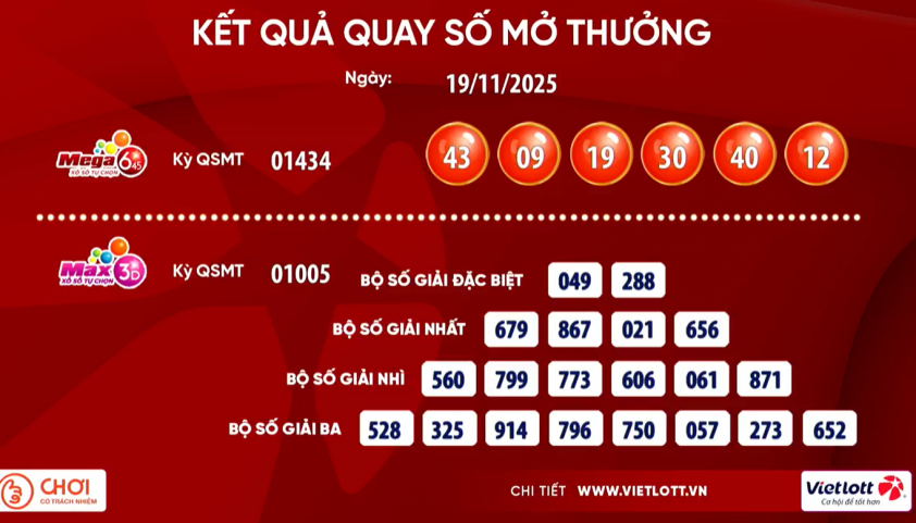 KẾT QUẢ XỔ SỐ VIETLOTT 19/11/2025 - THỨ TƯ