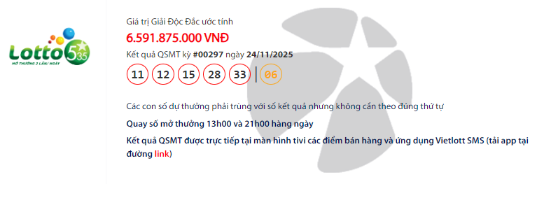 KẾT QUẢ XỔ SỐ VIETLOTT 24/11/2025 - THỨ HAI