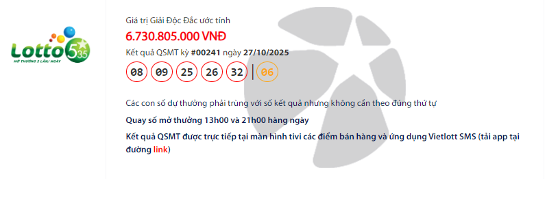 KẾT QUẢ XỔ SỐ VIETLOTT HÔM NAY 27/10