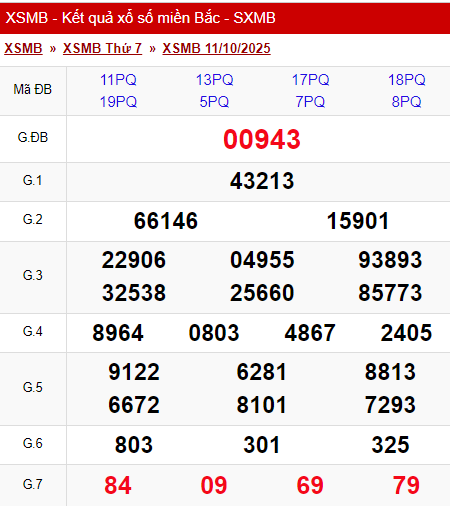 XSMB 11/10/2025 - Kết quả xổ số miền Bắc hôm nay 11/10/2025