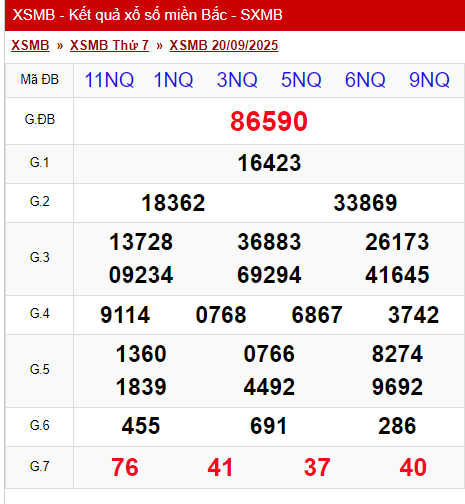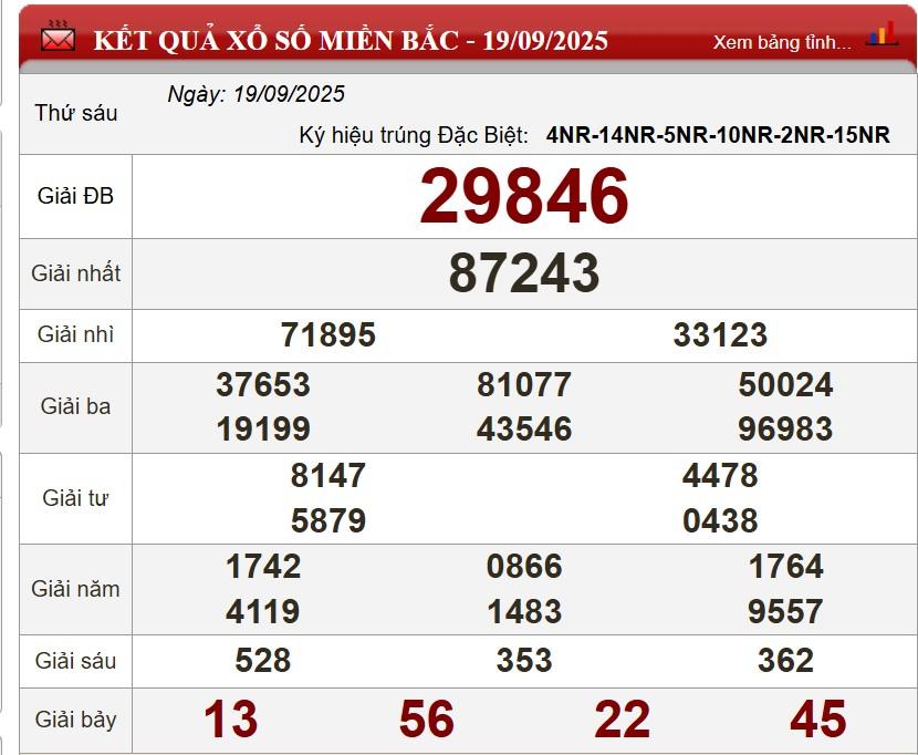 XSMB 20/9/2025 - Kết quả xổ số miền Bắc hôm nay 20/9/2025