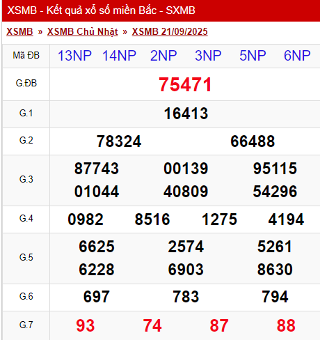 Kết quả xổ số miền Bắc (XSMB) hôm nay ngày 21/9