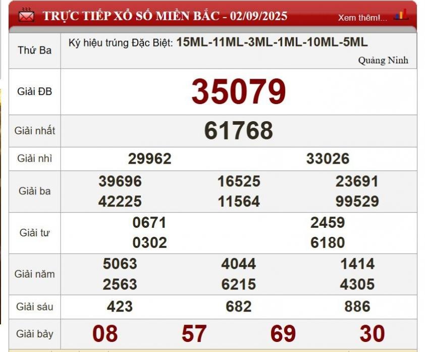 XSMB 3/9/2025 - Kết quả xổ số miền Bắc hôm nay 3/9/2025