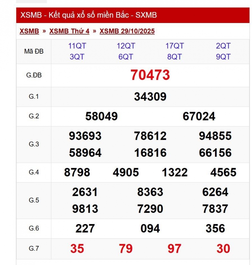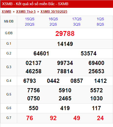 XSMB 30/10/2025 - Kết quả xổ số miền Bắc hôm nay 30/10/2025