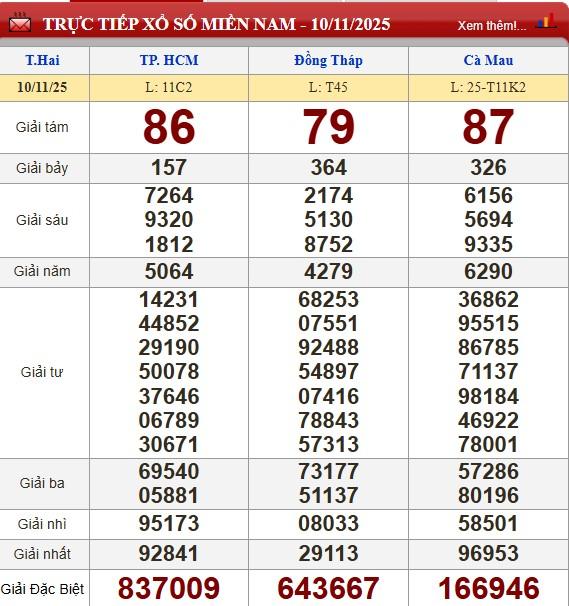 Kết quả xổ số miền Nam (XSMN) hôm nay ngày 10/11