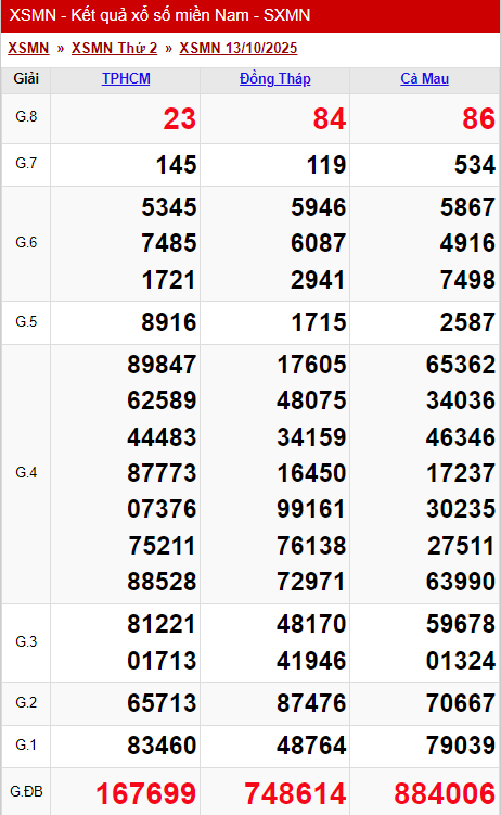 XSMN 13/10/2025 - Kết quả xổ số miền Nam hôm nay 13/10/2025