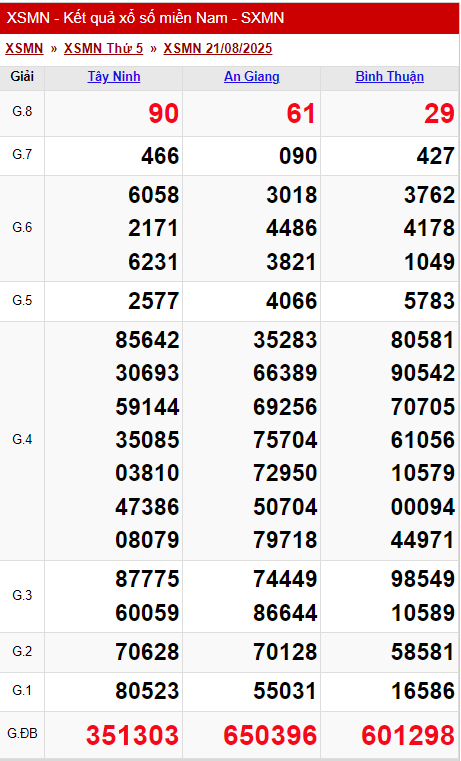 XSMN 21/8/2025 - Kết quả xổ số miền Nam hôm nay 21/8/2025