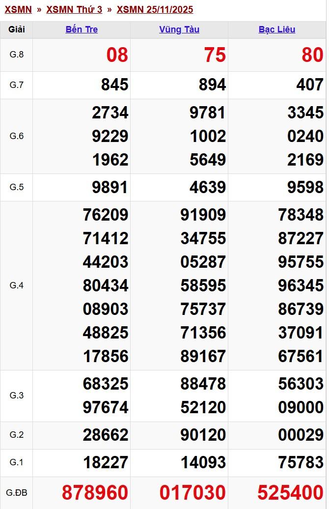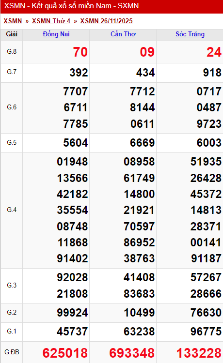 Kết quả xổ số miền Nam (XSMN) hôm nay ngày 25/11