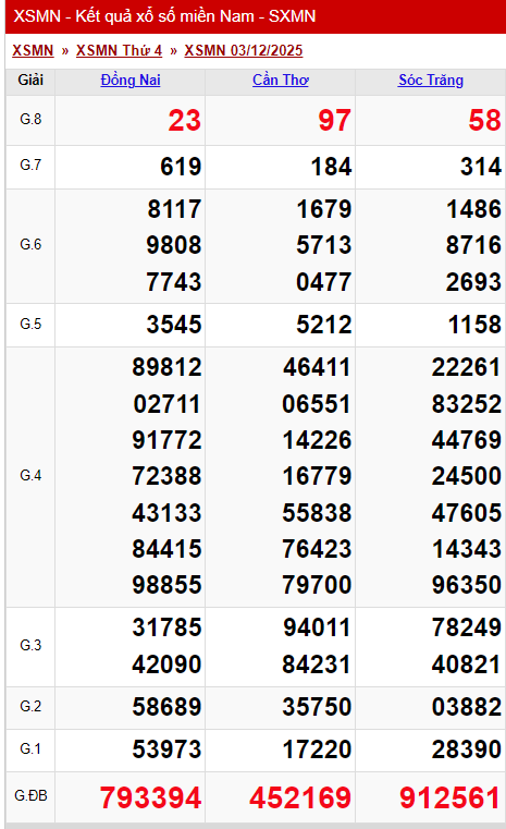 Kết quả xổ số miền Nam (XSMN) hôm nay ngày 3/12