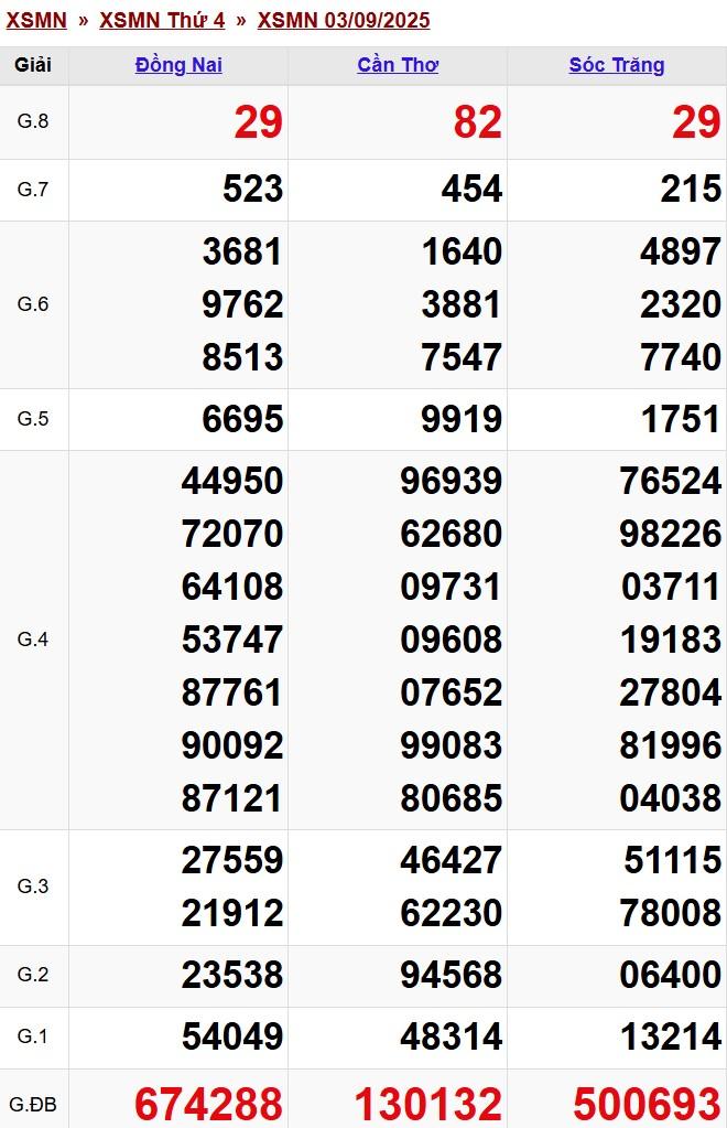 Kết quả xổ số miền Nam (XSMN) hôm nay ngày 3/9