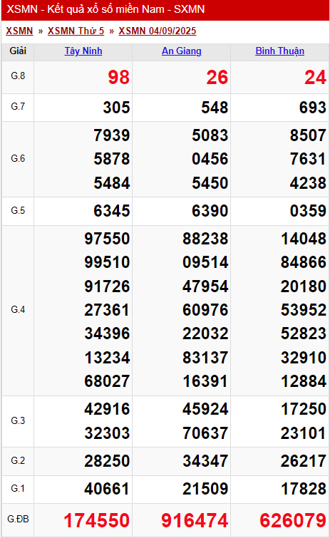 Kết quả xổ số miền Nam (XSMN) hôm nay ngày 4/9