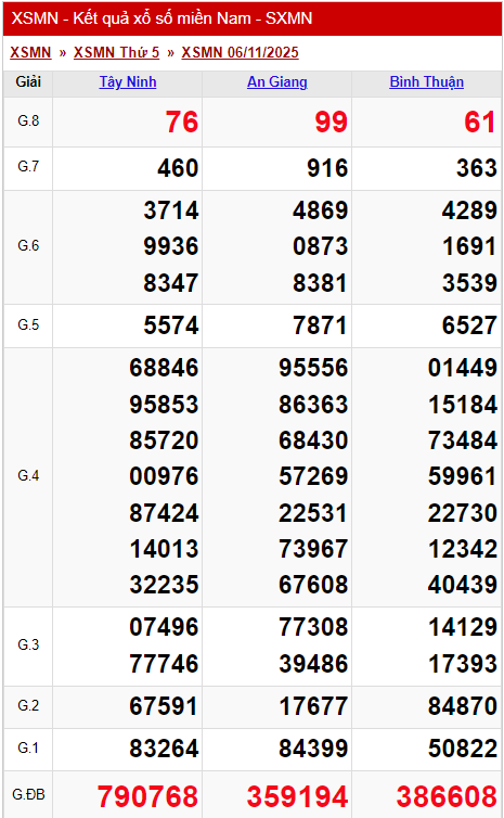Kết quả xổ số miền Nam (XSMN) hôm nay ngày 6/11