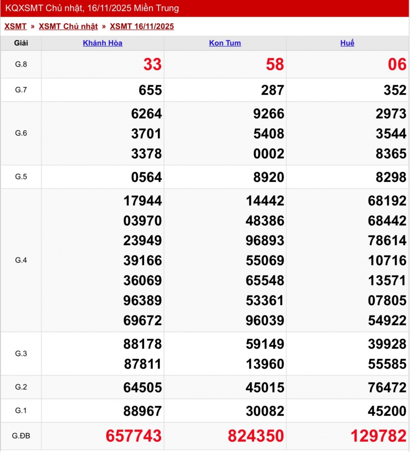 Kết quả xổ số miền Trung (XSMT) hôm nay ngày 16/11
