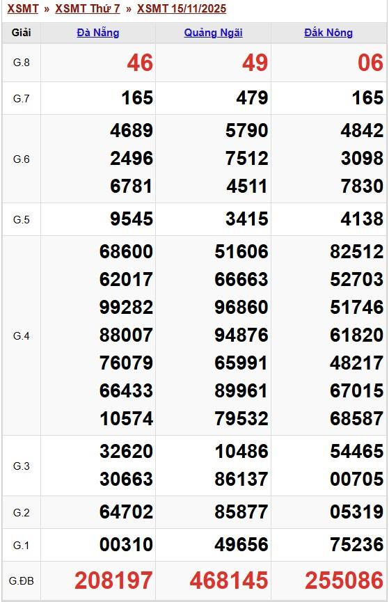 Kết quả xổ số miền Trung (XSMT) hôm qua ngày 15/11