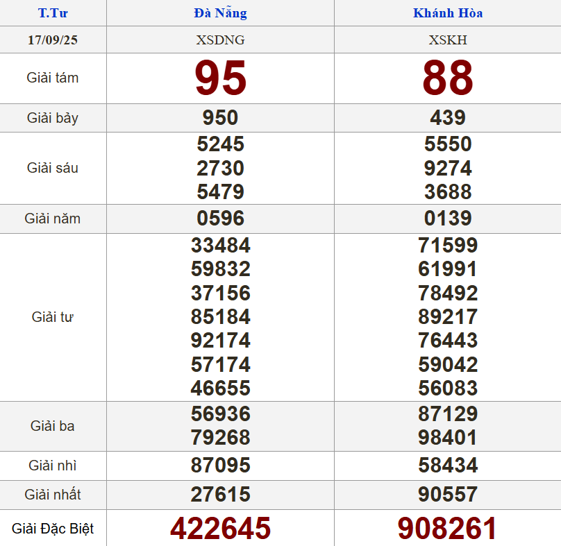 Kết quả xổ số miền Trung (XSMT) hôm nay ngày 17/9