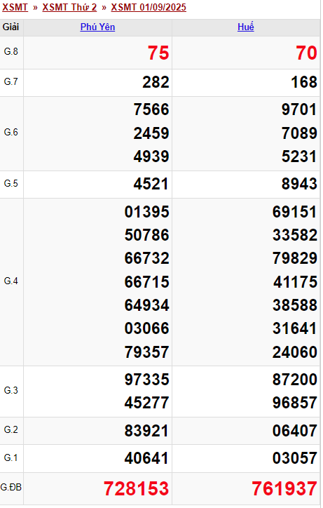 Kết quả xổ số miền Trung (XSMT) hôm nay ngày 1/9