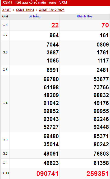 Kết quả xổ số miền Trung (XSMT) hôm nay ngày 3/12