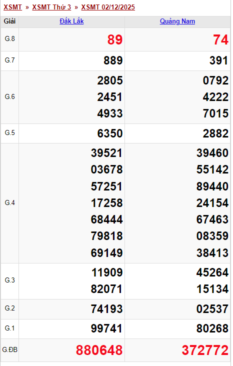 Kết quả xổ số miền Trung (XSMT) hôm nay ngày 2/12