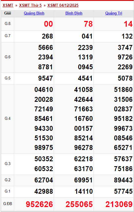XSMT 4/12/2025 - Kết quả xổ số miền Trung hôm nay 4/12/2025