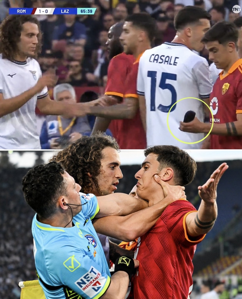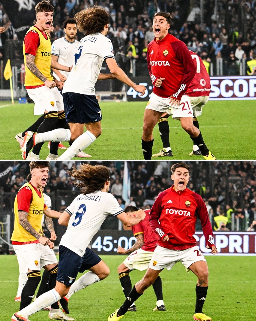 Căng thẳng tiếp tục diễn ra khi cặp đôi này vẫn còn nóng máu ngay cả khi trọng tài đã thổi còi hết trận, với việc ống kính máy quay bắt được cảnh Dybala ăn mừng chiến thắng ngay trước mặt Guendouzi.