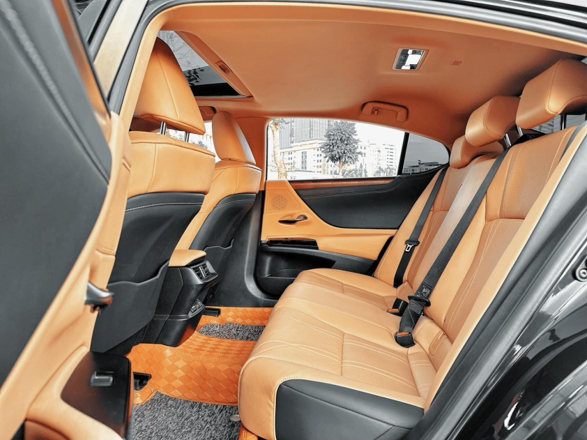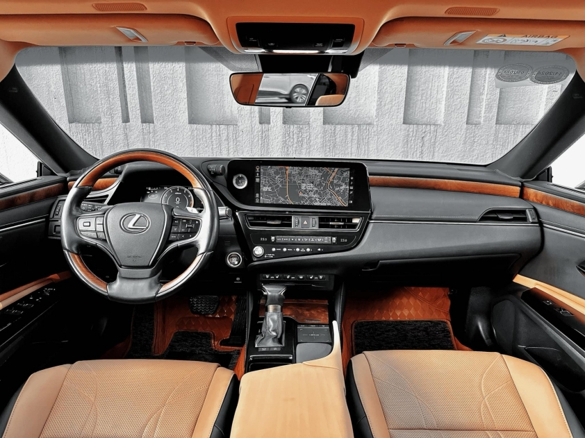 Bên trong, Lexus ES 250 mang đến không gian nội thất sang trọng và tinh tế. Bảng tablo bọc da cao cấp, kết hợp với màn hình EMV 8 inch và đồng hồ analog LED tạo nên sự đẳng cấp cho xe. Khoang hành khách rộng rãi với chiều dài cơ sở 2820 mm và các tùy chọn màu sắc nội thất đa dạng như Nâu, Kem và Đen.