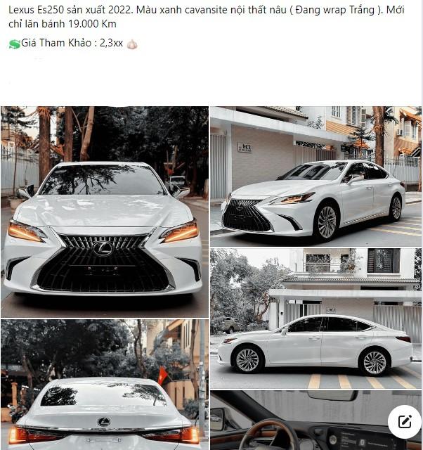 Khảo sát trên thị trường xe cũ tại Việt Nam, một chiếc Lexus ES 250 đời 2022 đang được rao bán với mức giá hơn 2,3 tỷ đồng. Chiếc xe này mới chỉ lăn bánh 19.000 km sau 2 năm đăng ký, các chi tiết nội - ngoại thất vẫn còn rất mới và chưa có dấu hiệu hao mòn.