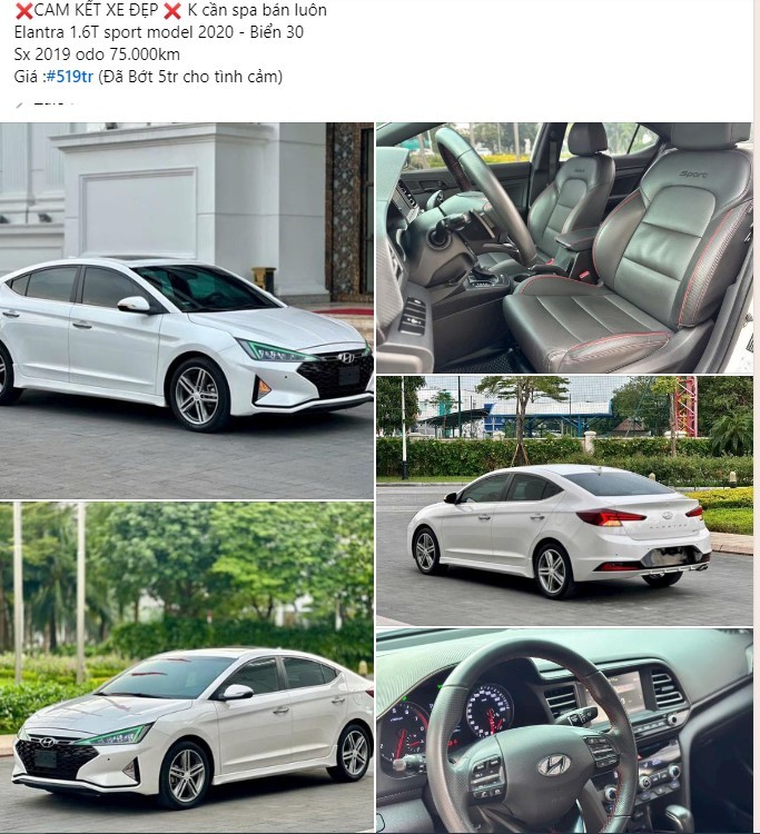 Mới đây, một chiếc Hyundai Elantra 2019 phiên bản 1.6T Sport đã được rao bán với mức giá 519 triệu đồng sau khi đã lăn bánh khoảng 75.000 km.