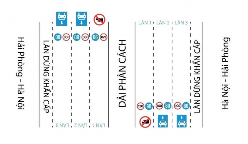 Hiện cao tốc Hà Nội – Hải Phòng có 3 làn xe mỗi chiều. Trước đây, làn 1 và làn 2 áp dụng giới hạn tốc độ 80 – 120 km/h, còn làn 3 ở mức 60 – 100 km/h.