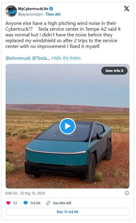 Sau khi gặp vấn đề với tiếng ồn gió từ kính chắn gió mới, một chủ xe Cybertruck tại Arizona đã quyết định tự mình tìm cách giải quyết khi Tesla không thể khắc phục vấn đề này.