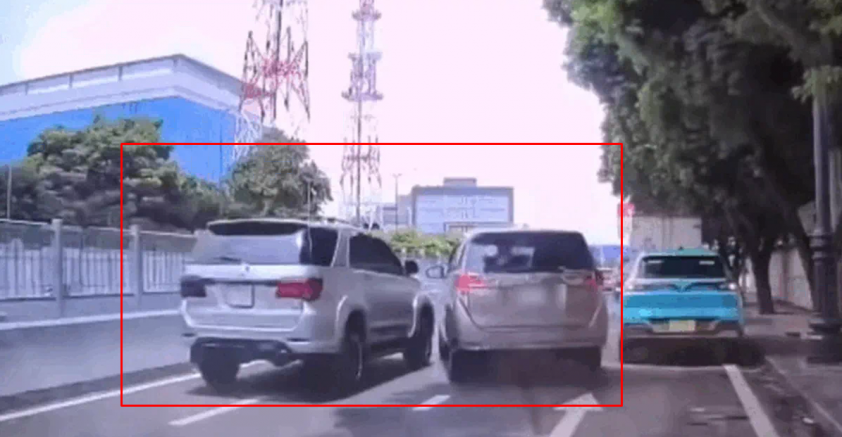 Trong clip, một chiếc Toyota Innova từ ven đường bất ngờ lao ra nhập làn, đúng lúc một chiếc Toyota Fortuner đang chạy phía sau.