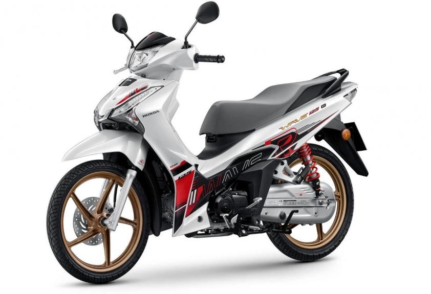 Phiên bản thể thao Honda Wave 125R: Sơn trắng, tem đen/đỏ, mâm đúc vàng kim, phuộc sau Profender tùy chỉnh – 66.200 baht (50,8 triệu đồng).