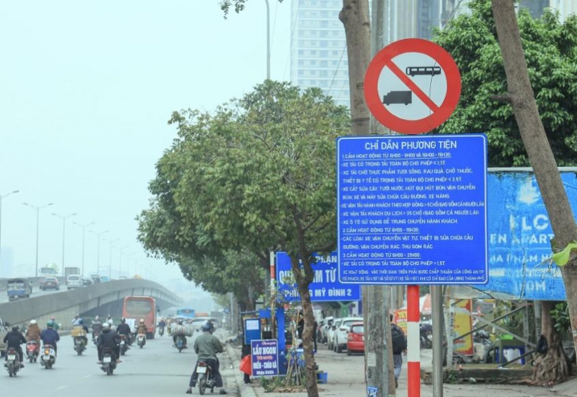 Một ví dụ điển hình là tại đường Phạm Hùng, đoạn rẽ vào phố Xuân Thủy, biển báo về giới hạn khung giờ, trọng tải xe và các trường hợp ngoại lệ có nội dung dày đặc, chữ nhỏ, gây khó khăn trong việc tiếp nhận thông tin.