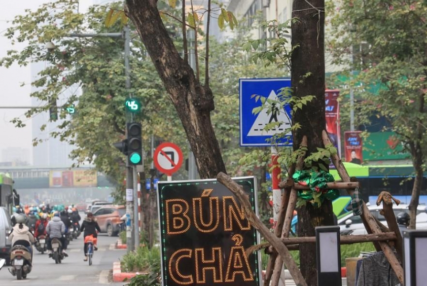 Tình trạng biển báo giao thông bị che khuất bởi cây xanh, biển quảng cáo và các vật cản khác đang trở thành vấn đề nhức nhối trên nhiều tuyến đường tại Hà Nội.