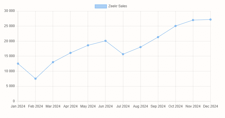 <*!>Zeekr đặt mục tiêu giao 320.000 xe vào năm 2025, tăng gần 100.000 xe so với năm 2024.Năm vừa qua, công ty đã giao 222.123 xe, tăng 87,3% so với năm 2023 nhưng vẫn chưa đạt được mục tiêu 230.000 xe.