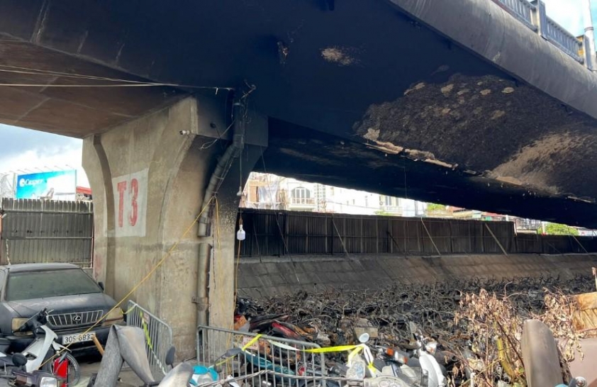 Sau sự cố hỏa hoạn tại bãi giữ xe dưới gầm cầu Vĩnh Tuy tối 30/8, Sở Xây dựng Hà Nội đã tiến hành kiểm tra sơ bộ hiện trạng công trình.