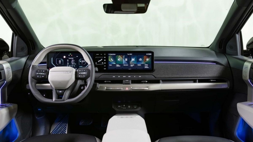 Không dừng lại ở ngoại thất, nội thất của EV3 cũng gây ấn tượng với việc sử dụng các vật liệu độc đáo, chưa từng có trong ngành công nghiệp ô tô. Vô lăng và bảng điều khiển trung tâm của xe được bọc bằng Apple Skin, một loại vật liệu giống da được sản xuất từ chất thải táo trong ngành công nghiệp thực phẩm.