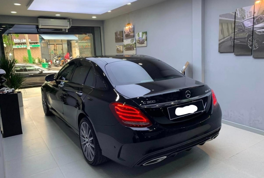 Hốc hút gió màu đen và mâm xe đa chấu mang đến nét thể thao cho chiếc xe. Phía sau, cụm đèn hậu LED, logo C300 và AMG cùng ống xả đối xứng hai bên hoàn thiện vẻ ngoài mạnh mẽ.