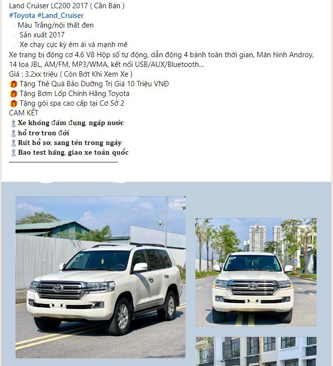 Hiện nay, một chiếc Toyota Land Cruiser LC200 2017 đã qua sử dụng, lăn bánh gần 10 vạn kilomet, vẫn đang được rao bán với mức giá trên 3,2 tỷ đồng.