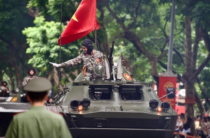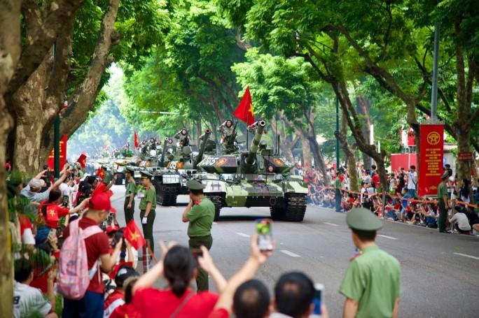 Trong đoàn diễu binh, xe tăng chiến đấu chủ lực T-54/55 của Quân đội nhân dân Việt Nam tiếp tục gây ấn tượng.