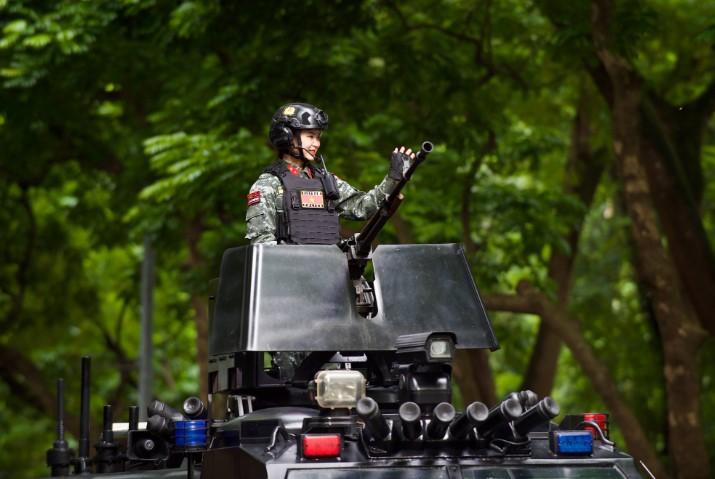 Đặc biệt, xe bọc thép chuyên dụng của Cảnh sát cơ động với khả năng chống đạn, chống cháy và trang bị tháp súng quan sát đã thu hút sự chú ý.