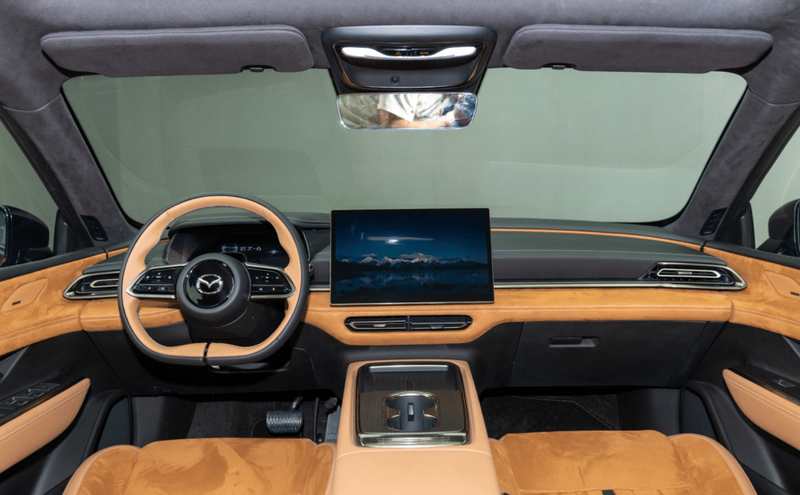 Mazda EZ-6 sở hữu không gian nội thất tiện nghi và hiện đại, với tâm điểm là màn hình giải trí cảm ứng 14,6 inch đặt ở trung tâm taplo.