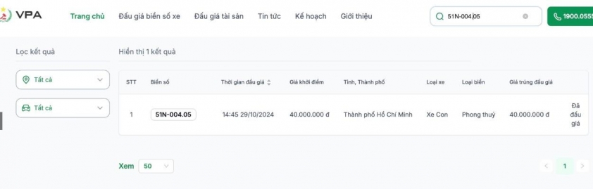 Theo thông tin từ các hội nhóm siêu xe, biển số 51N - 004.05 được đăng ký thông qua đấu giá trực tuyến trên vpa.com.vn và đã chốt thành công vào ngày 29/10/2024 với mức giá 40 triệu đồng.