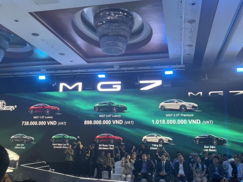 MG7 chính thức chào sân thị trường Việt với 3 phiên bản. Giá niêm yết lần lượt cho 3 phiên bản này là 738 triệu, 898 triệu và 1.018 tỷ đồng.