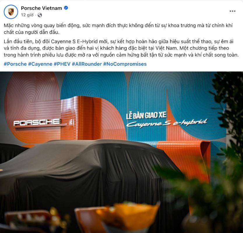 Porsche Việt Nam vừa đăng tải hình ảnh về hai chiếc Cayenne S E-Hybrid đầu tiên xuất hiện tại thị trường trong nước.