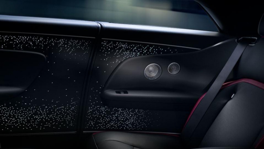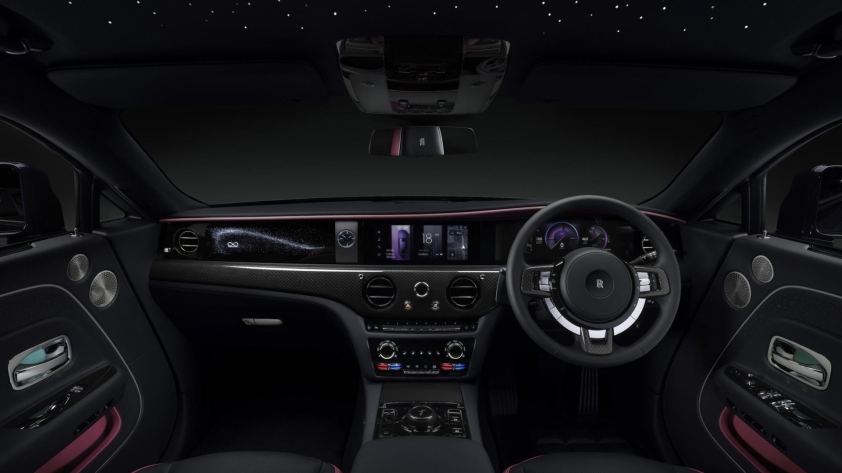 Bên trong, Black Badge Spectre sở hữu tấm bảng Fascia phát sáng với biểu tượng vô cực đặc trưng, kết hợp với 5.500 "ngôi sao" có kích thước và độ sáng khác nhau, tạo hiệu ứng "bầu trời sao" trên nền đen Piano Black.