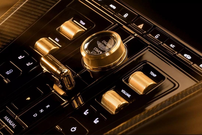 Điểm nhấn đặc biệt khác là các chi tiết mạ vàng dọc theo thân xe, logo Aston Martin màu bạc và đen cùng với huy hiệu Q trên chắn bùn. Tất cả các chi tiết này đều được chăm chút kỹ lưỡng nhằm tạo nên sự sang trọng và độc đáo cho phiên bản đặc biệt này.