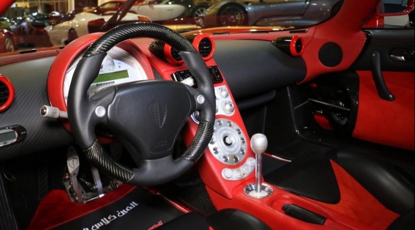 Bên cạnh hiệu suất mạnh mẽ, chiếc xe mang thiết kế nội thất cổ điển. Vô-lăng không có nút bấm chức năng, trong khi ghế ngồi được bọc da phối hai tông màu đỏ-đen, hài hòa với ngoại thất. Điểm đặc biệt là mui xe có thể tháo rời thủ công, kết hợp nhiều chi tiết làm từ sợi carbon – thiết kế tương tự mẫu Koenigsegg Regera trị giá gần 200 tỷ đồng của Hoàng Kim Khánh.
